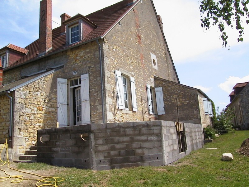 Ca y est, la terrasse a sa forme définitive, brute. La dalle a été coulée. Il n’y a plus qu’à…